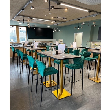 Moderner Barhocker. Durch seine markante industrielle Optik und die einzigartige Rückenlehne wirkt der Stuhl besonders authentisch und spektakulär - perfekt für jeden Anlass. Pflegeleicht. Geeignet für den Event- und Gastronomiebereich.